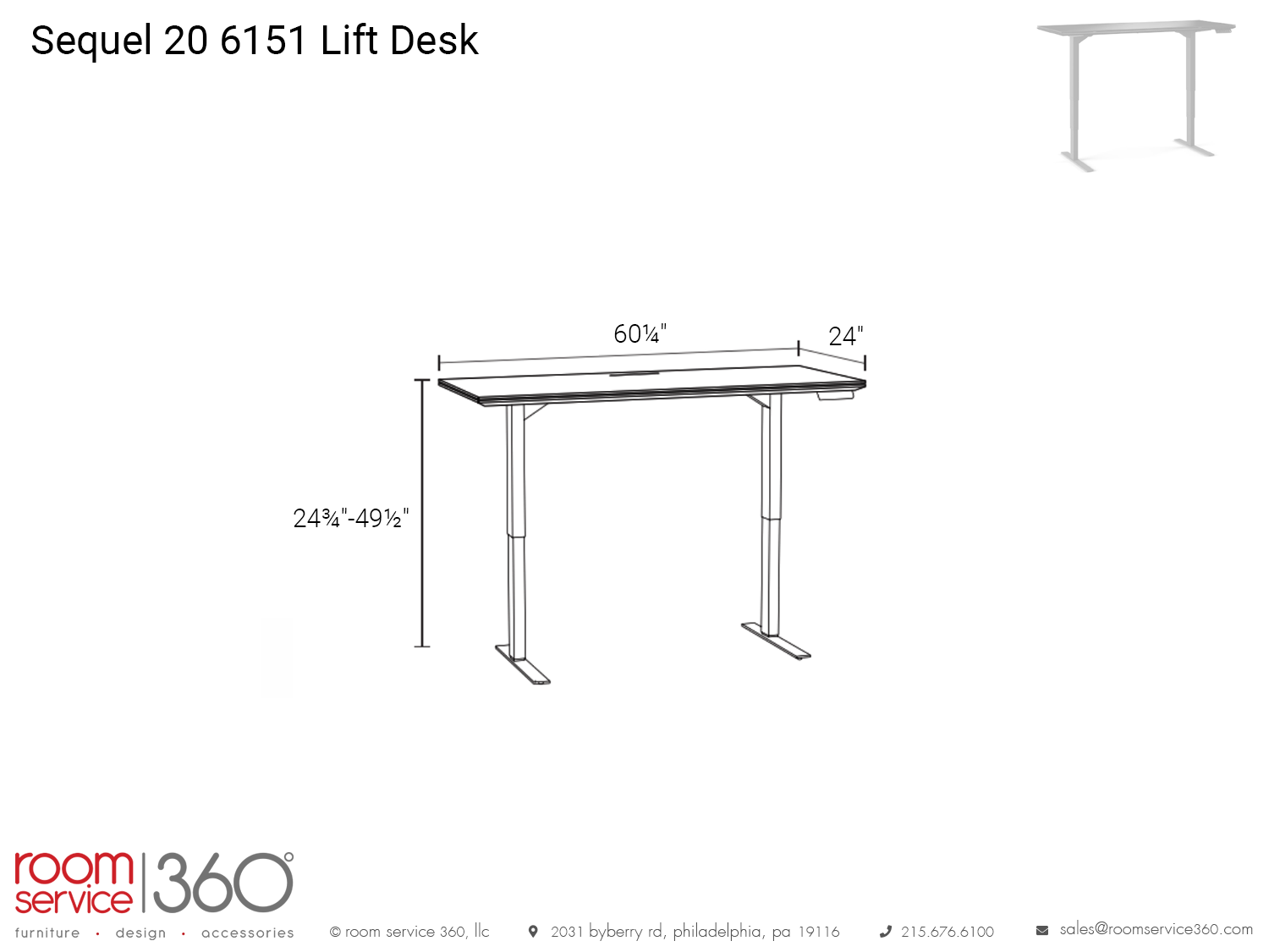 - 60¼"W × 24"D × 24¾"-49½"H