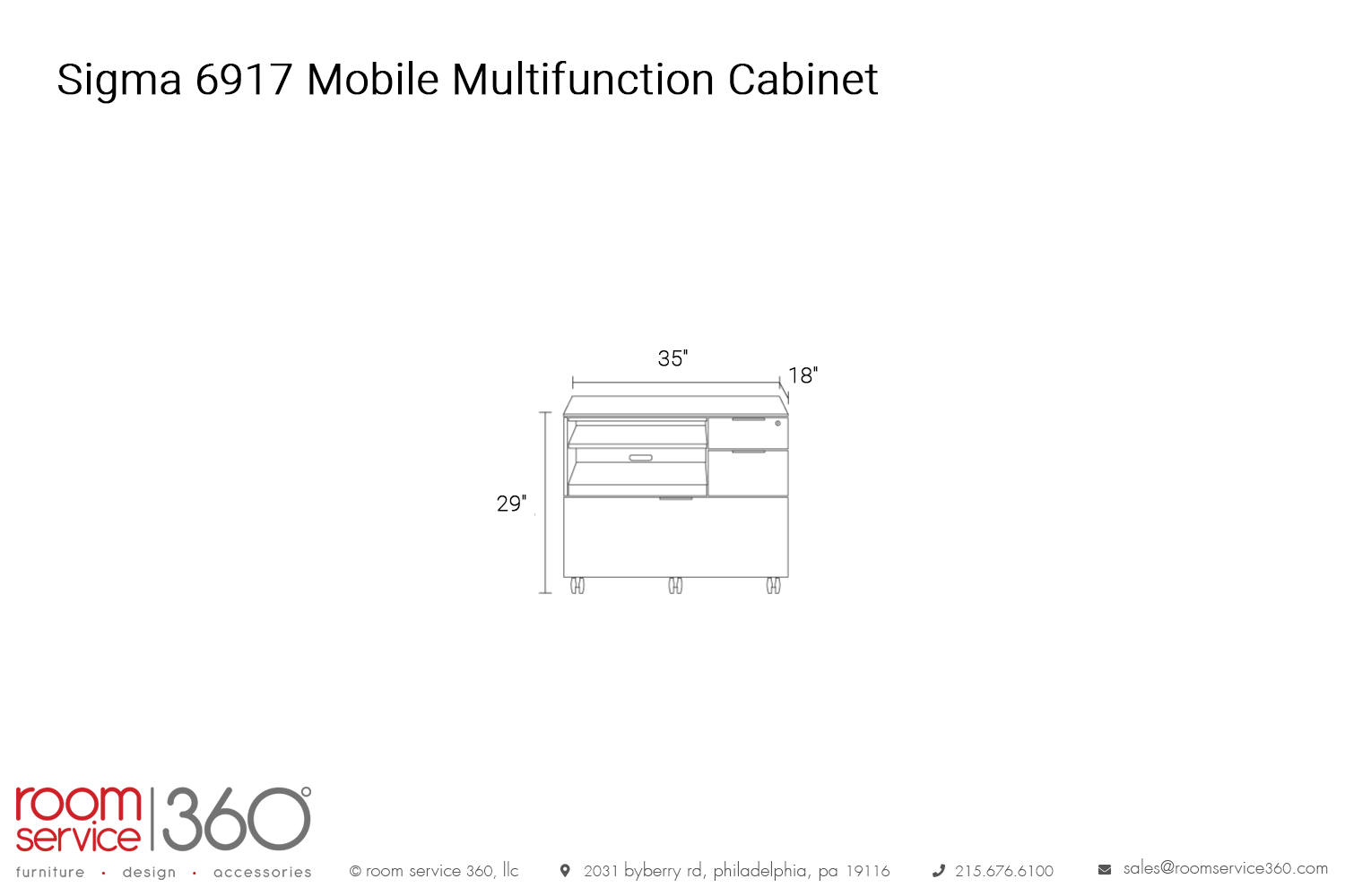 The Sigma 6917 multifunction cabinet by BDI is a convenient organizational tool for a modern office. With a minimal silhouette, it adapts well with the rest of the furniture and decor around the room. The built-in castors move smoothly and allow for easy relocation. There is a combination of drawers and shelves to keep items out of sight and on display. The one shelf is the perfect place for a printer and the opening in the back is great for cable management.