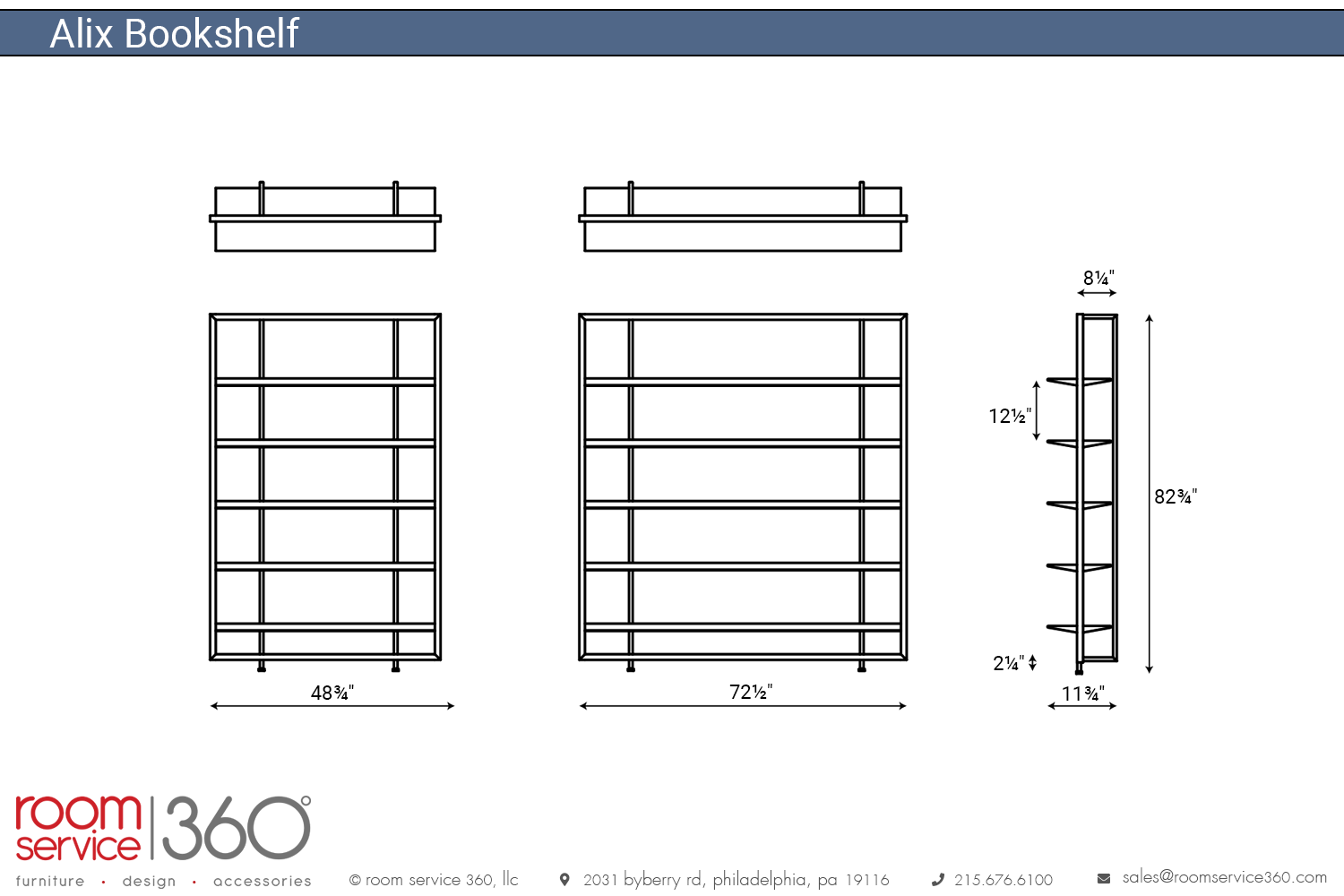 - 48¾"W × 11¾" D × 82¾"H