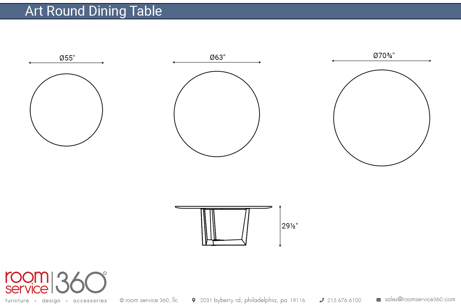 - Ø63"W × 29½" H