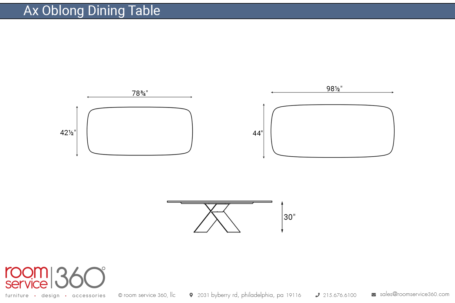 - 98½"W × 44" D × 30" H