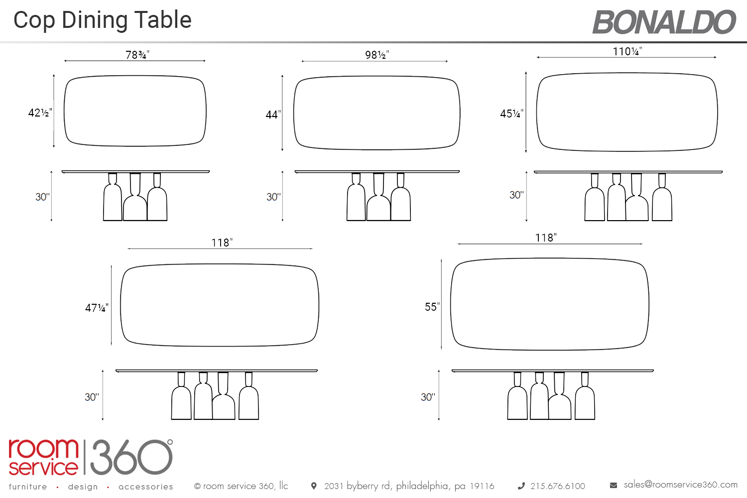 - 118"W × 55" D × 30" H
