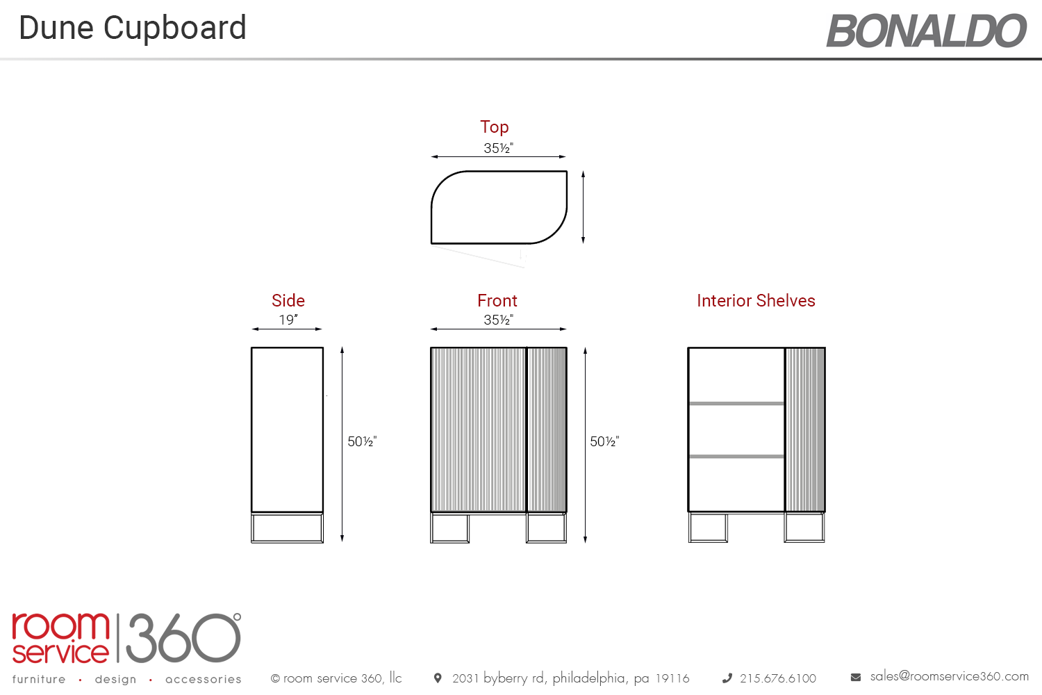 - 35½"W × 19"D × 50½"H