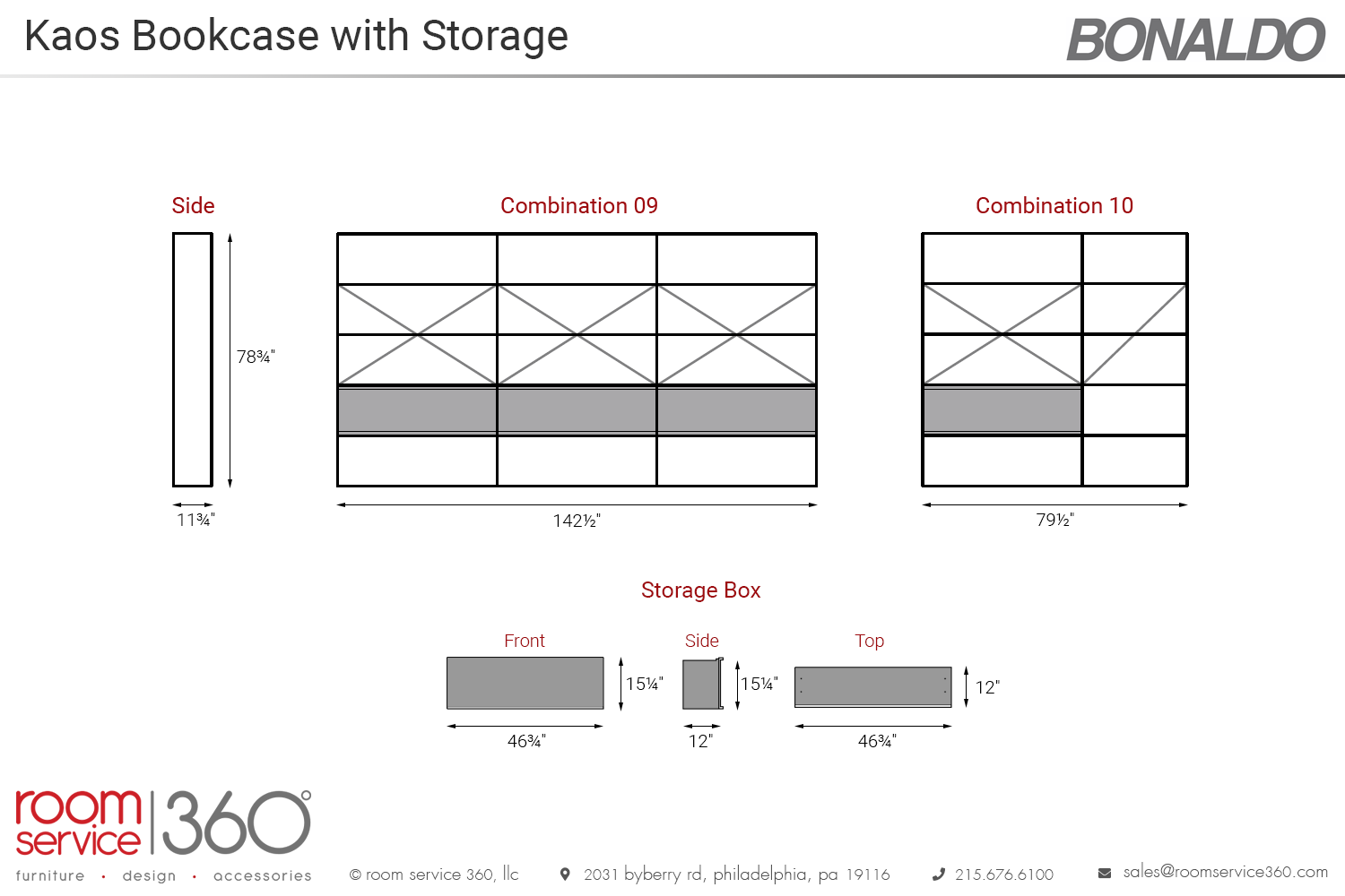- Combination 10: 79½"W × 11¾"D × 78¾"H