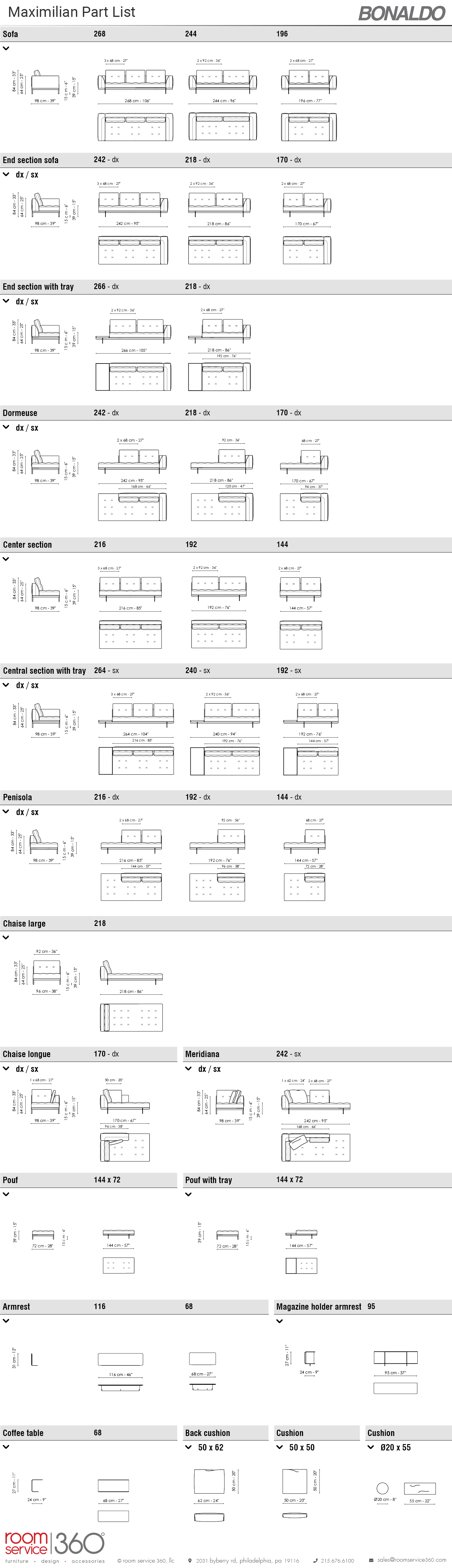 Three sizes are available for this sofa, and its configuration is reversible. The upholstery, leather armrests, and base all have an array of finishes to choose from to make the perfect bespoke solution. The Maximilian sectional sofa with chaise is part of the Maximilian collection, designed by Sergio Bicego and manufactured by Bonaldo in Italy with incredible attention to detail.