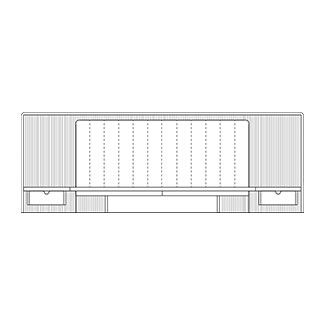 The Nelson bed commands as the focal point in a contemporary bedroom. This bed pays acute attention to detail. The frame and imposing headboard are finished in sophisticated wood; the headboard features subtle yet wholly stylish striated detailing. Making a complement to it in front is another headboard, upholstered, with its own delicate linear accents. Relax when you lean onto the soft upholstery and plush cushioning, and read, watch television, or simply lounge. Note the ‘L’ version of this bed with attached bedside tables that elevate this furnishing’s functionality. With it, incorporate a lamp or keep personal effects vital to your bedtime routine close.
