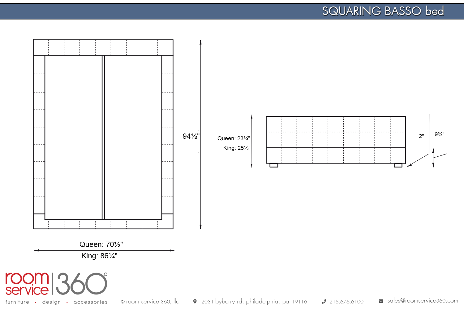 - Queen - 70½"W × 94½" D × 23¾"H
