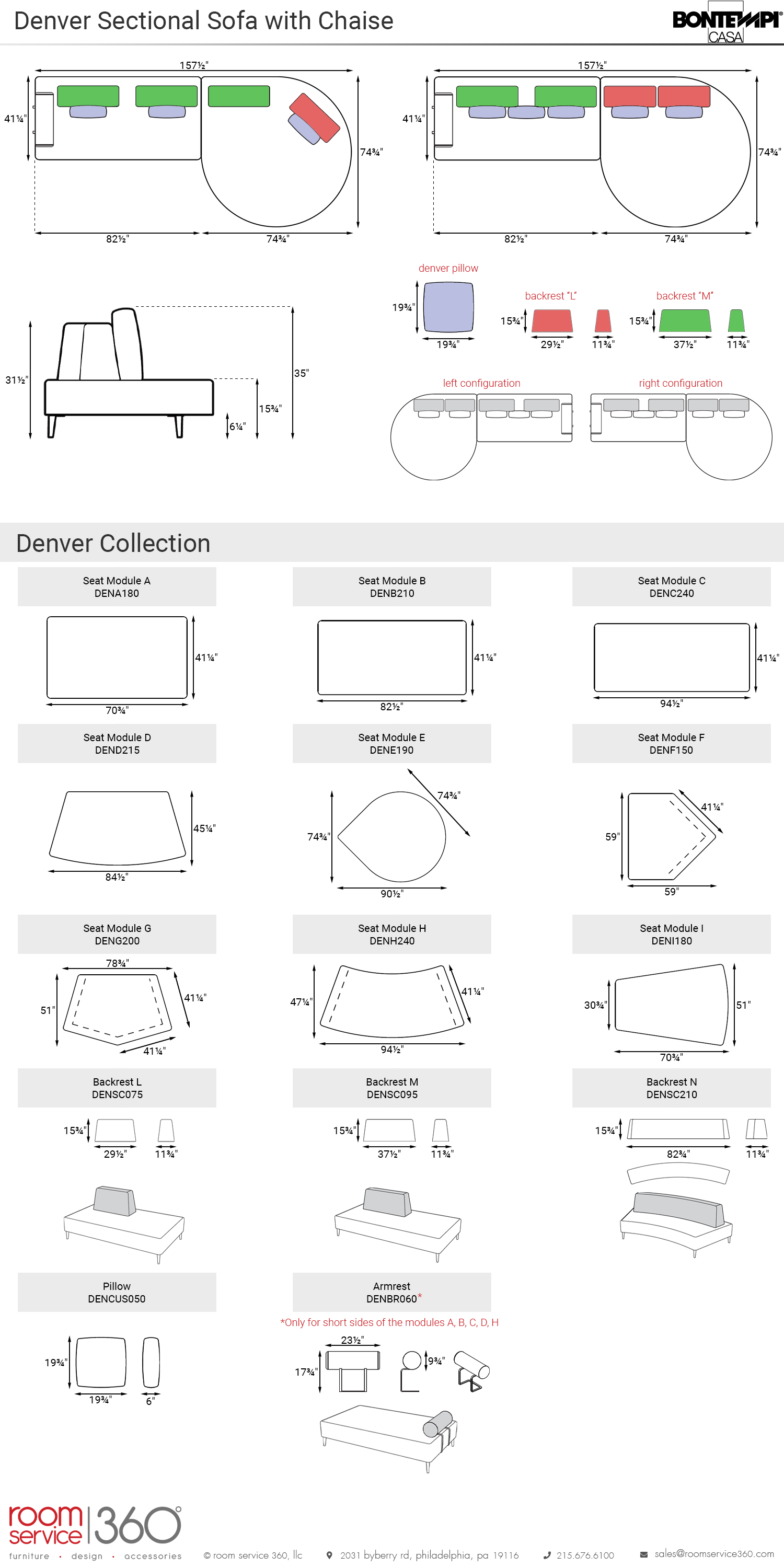 - Composition B includes 5 Denver pillows, 2 "M" backrests, and 2 "L" backrests