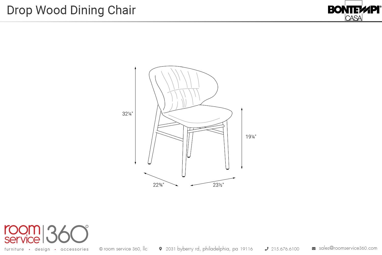 - 22¾"W × 23½"D × 32¼"H