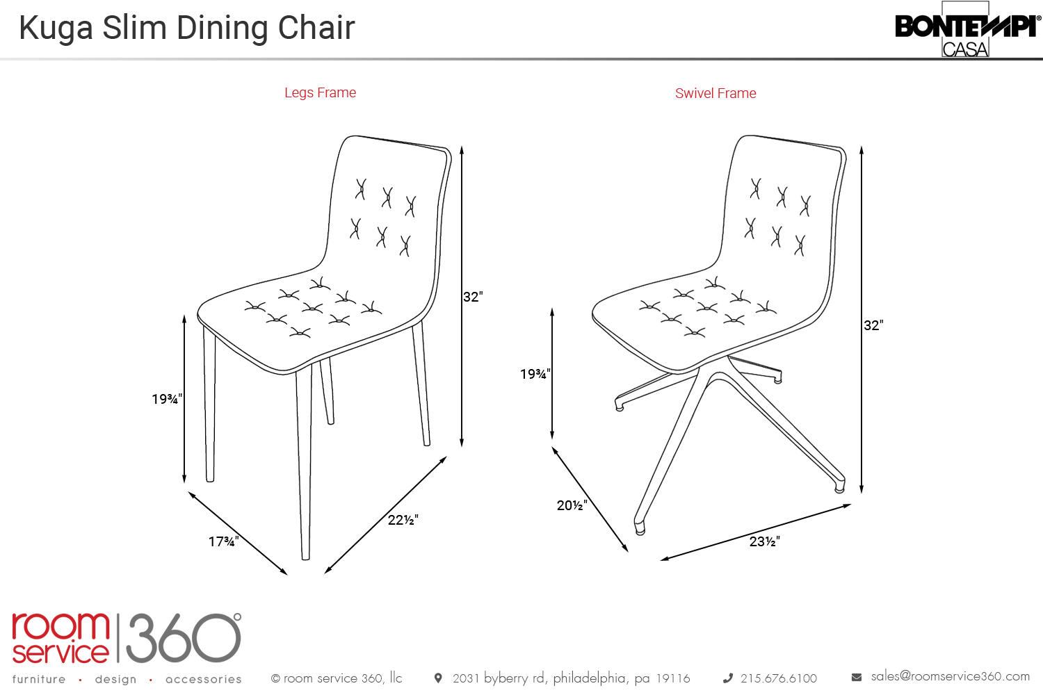 Choosing seating solutions that add elegance to your dining room has never been easier. The Kuga slim dining chair is a sophisticated option for formal dining rooms and kitchens. Thanks to the button-tufted upholstered seat, this chair features a geometric, textured pattern that stands out in style. The angled base can swivel and adds to that geometric style for a bold touch. It is also available with four legs. Not only is this a stylish chair, but a comfortable one as well. The soft upholstery and rounded seat offer comfort and support during meals and social gatherings. Pair with many Bontempi Casa dining tables to complete the look of your dining room.