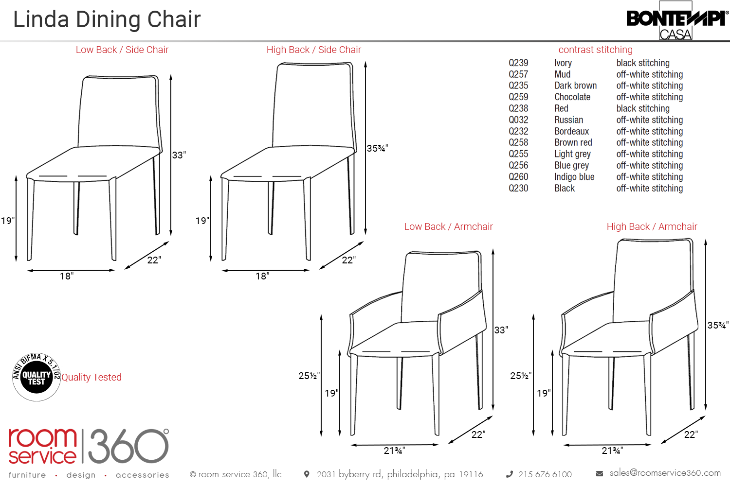 - Seat Height: 19"