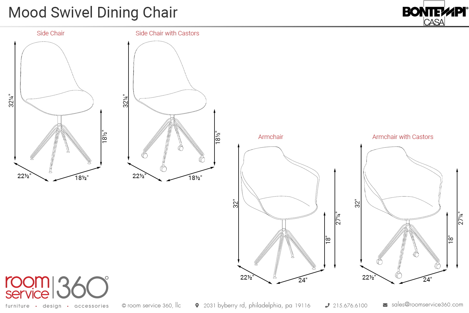 The Mood swivel dining chair by Bontempi Casa has a multi-faceted personality. This chair can be used in the dining room, offering ergonomic support during meals and social gatherings and in the office, providing those same features during work and meetings. Thanks to the swiveling seat and optional castors, you can move around the room with ease. Versions are available with and without arms to accommodate individual needs.