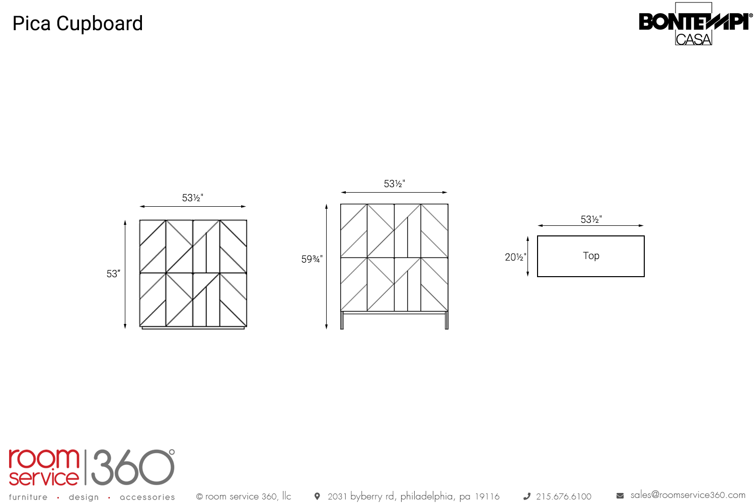 - 53½"W × 20½"D × 59¾"H