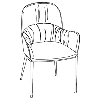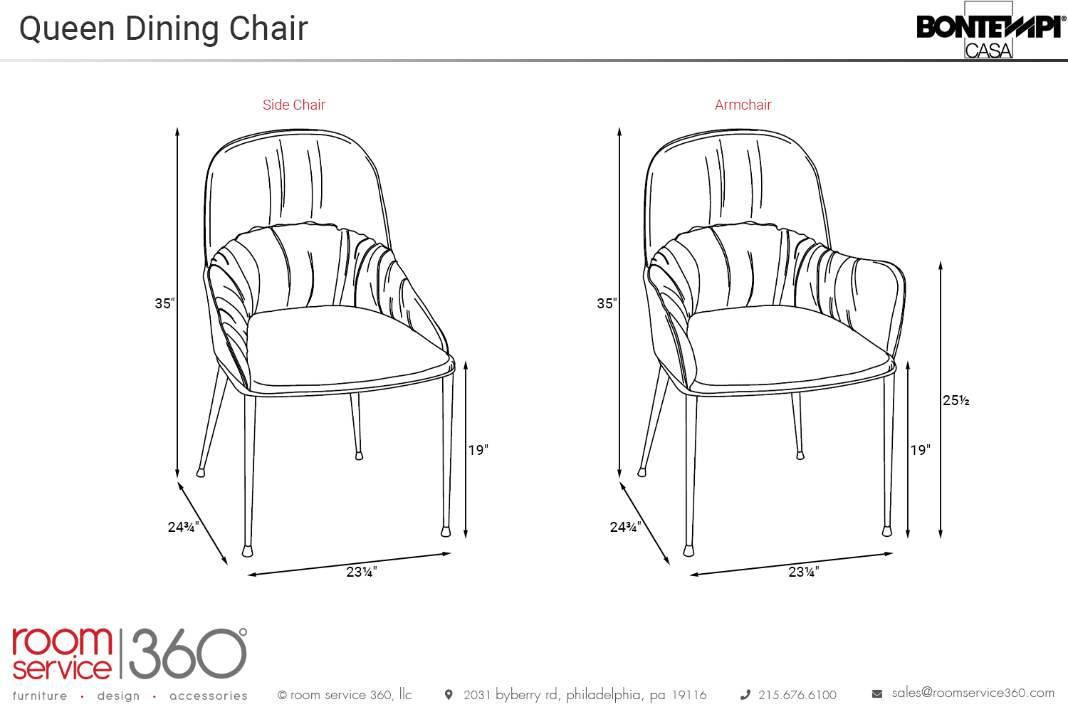 Manufactured in Italy with incredible attention to detail, the Queen dining chair is available with and without arms. Upholstery options include many fabrics, leathers, and eco-leathers, while the legs come in metal finishes.
