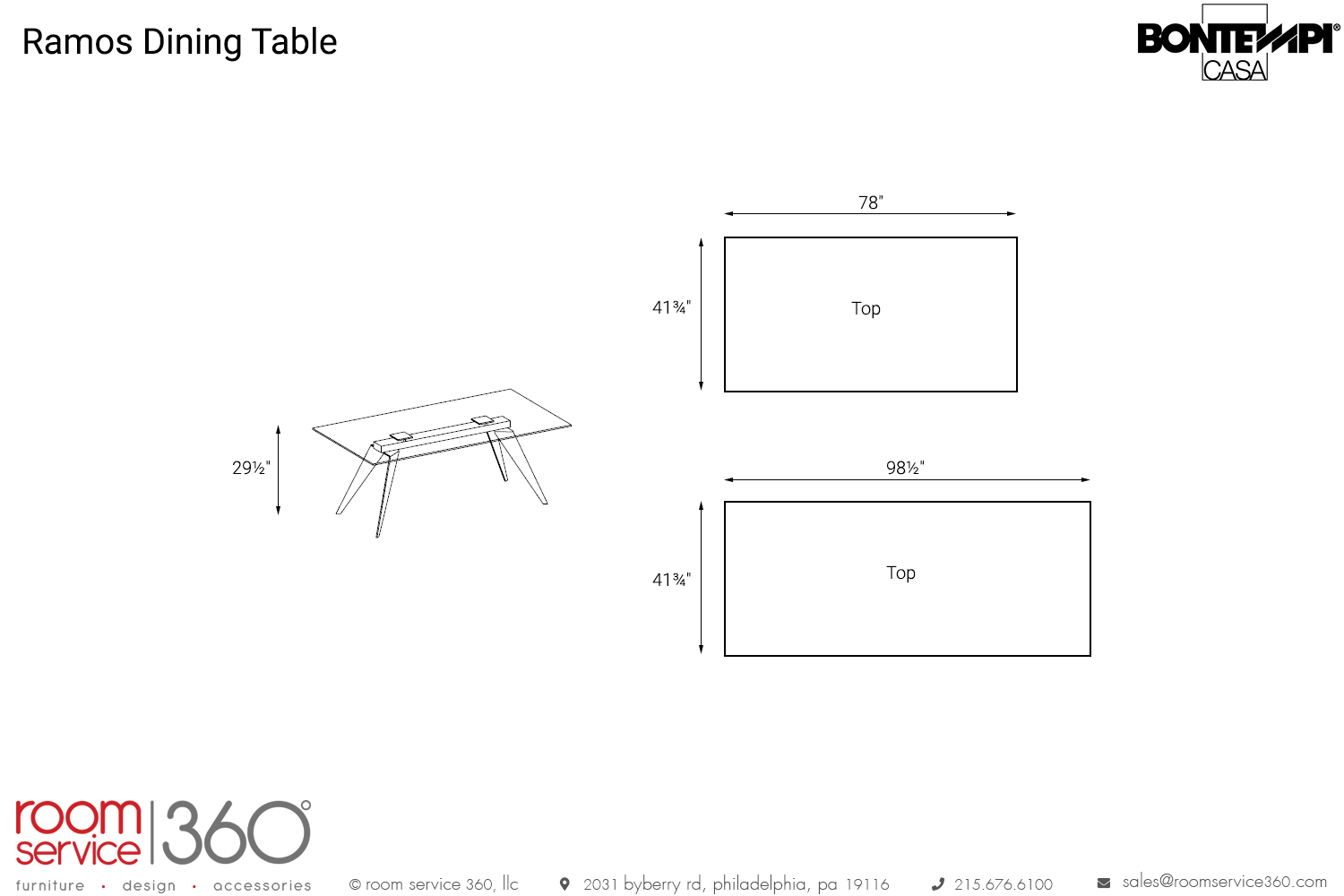 - 78"W × 41¾"D × 29½"H