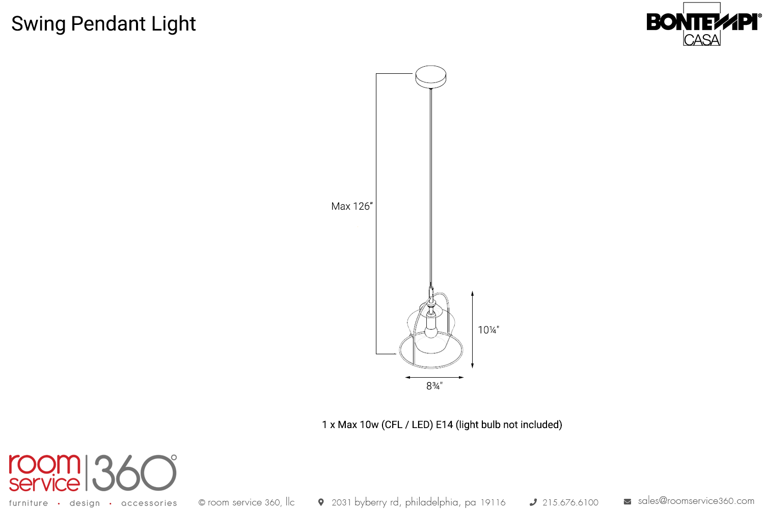 - 1 x Max 10w (CFL / LED) E14 (light bulb not included)