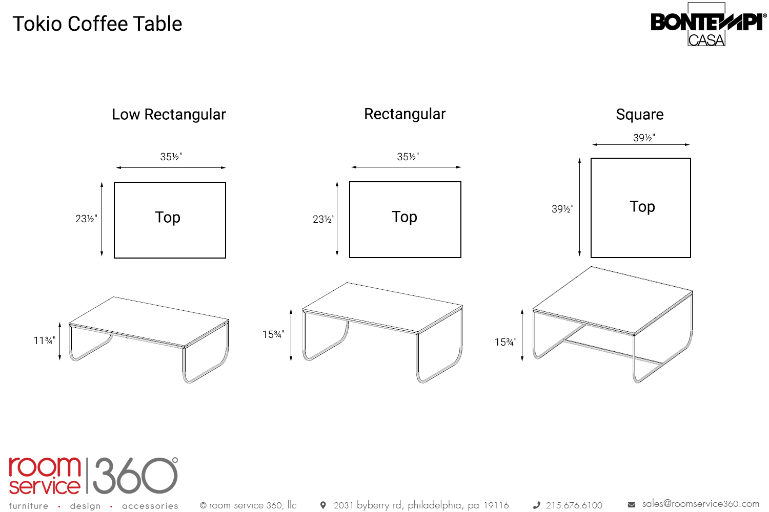 Manufactured in Italy to ensure quality, the Tokio coffee table is available in three sizes to accommodate individual needs. The top comes in glass, ceramic, and wood finishes, while the base comes in metal options.