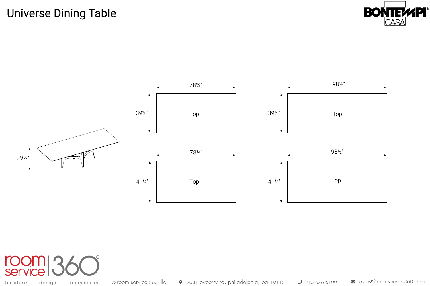 - The table is available in four sizes