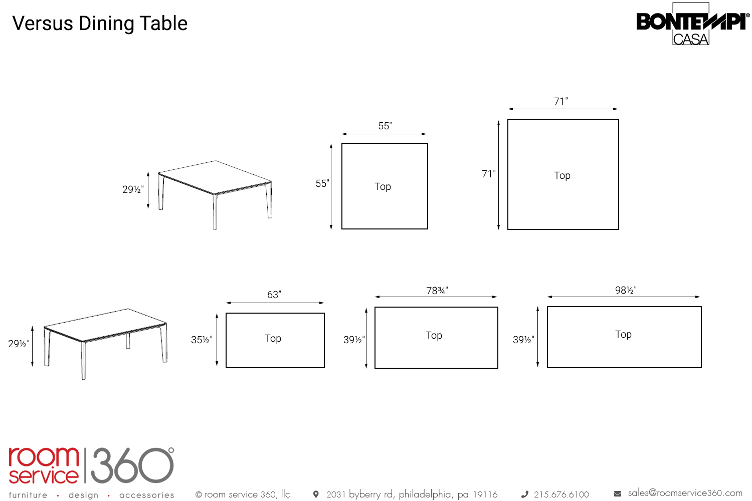 - Table available in square or rectangular shapes in several sizes