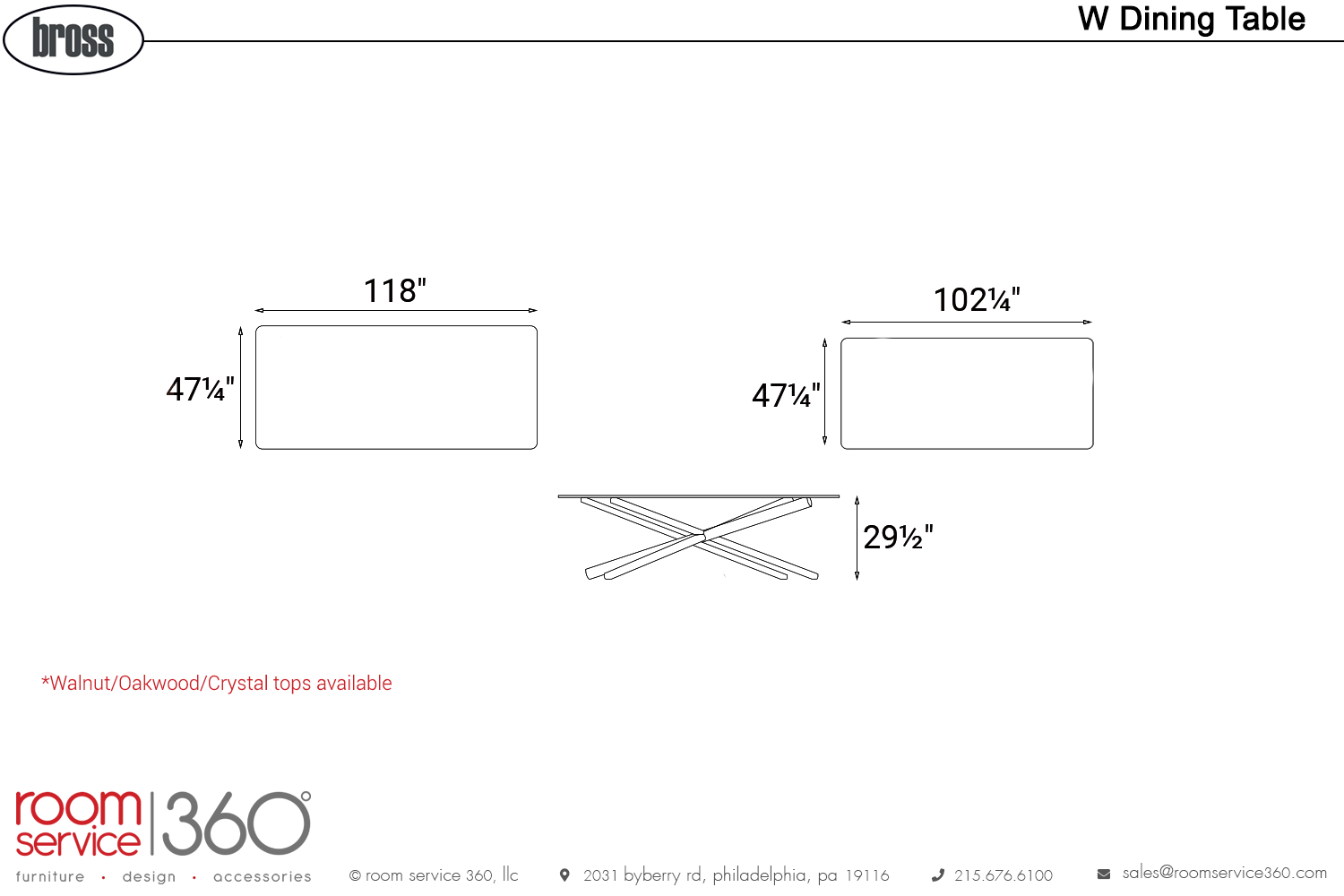- 118"W x 47¼"D x 29½"H