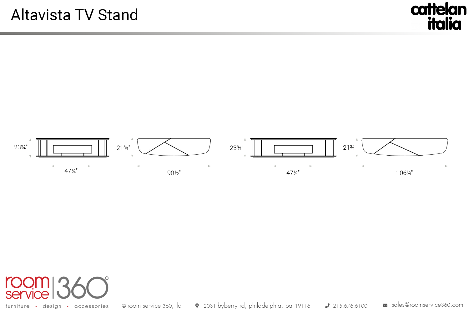 - 90½"W × 21¾"D × 23¾"H