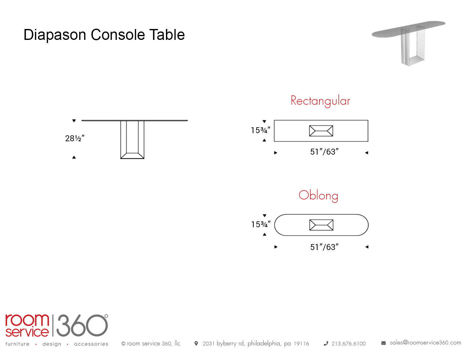 The Diapason console table comes with a high degree of customization. It comes in two sizes and two shapes, and the top is finished in clear glass, while the base is available in an array of marble finishes. The console table is ideally matched with the Diapason dining table enabling its placement in stylish proximity to each other, encouraging flow and interior harmony.