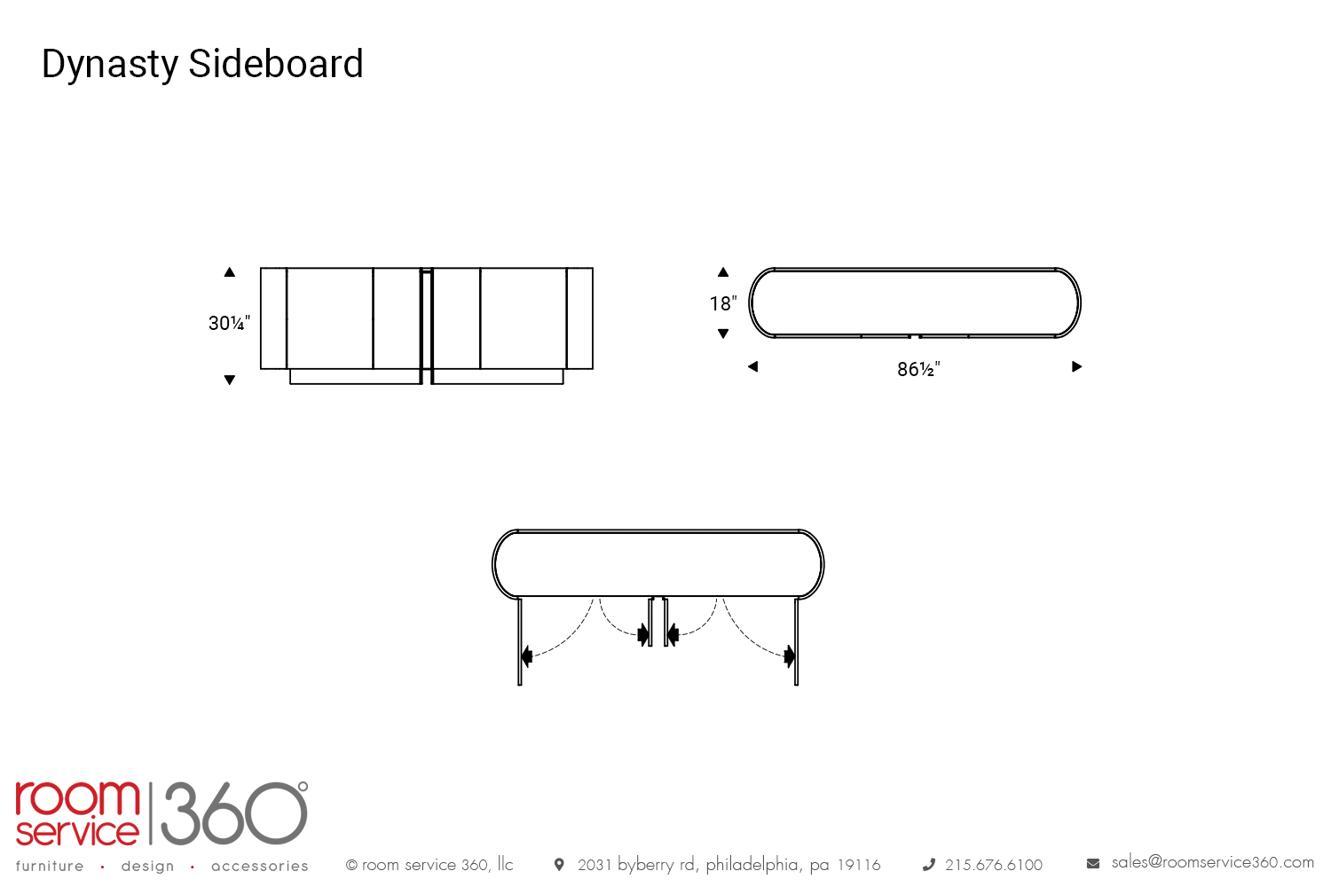 - 86½"W × 18"D × 30¼"H