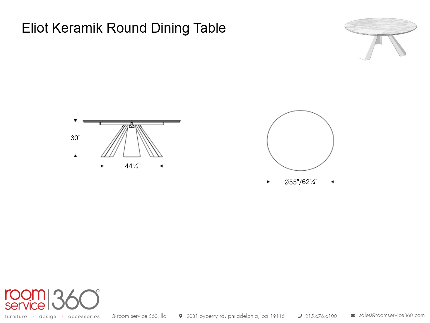The Eliot Keramik round table comes with a high degree of customization. The top has a myriad of ceramic finishes, and the base is available in various metal finishes. The optional lazy Susan swivel tray is finished in multiple ceramic finishes as well.
