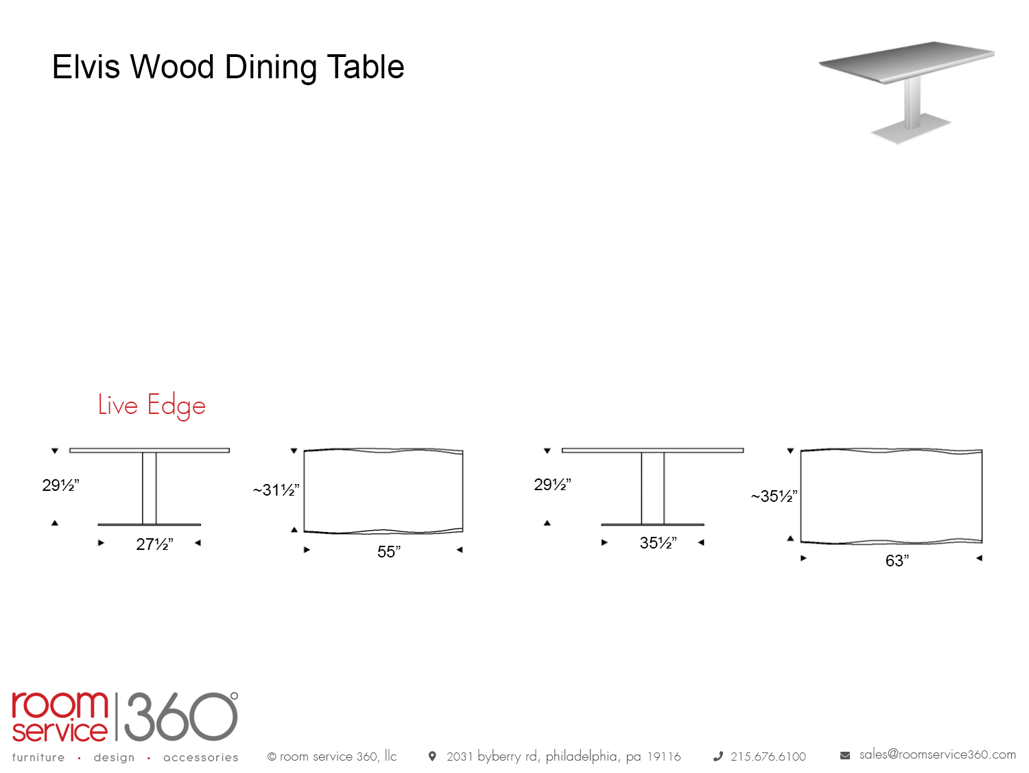 The Elvis wood dining table is available in two fixed sizes with a live edge top to accommodate individual needs. The base is available in stainless steel as well as in different colored lacquered steel while its top is available in various wood finishes.