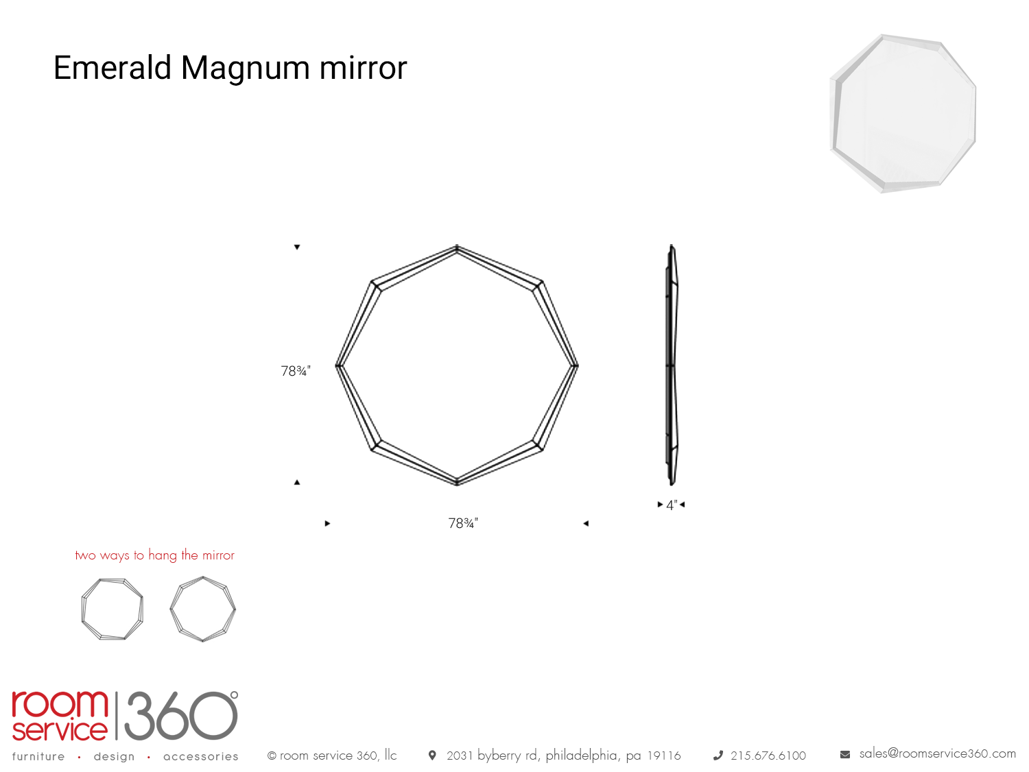 The Emerald Magnum mirror is there to make a lasting impression, if not shock with its mighty size and visual impact. With a playful use of geometry, the frame has an octagonal shape that makes it a bold piece of art. Not only is it gorgeous, but a practical product as well that allows you to check your reflection or give the illusion that the room is bigger than it seems. Whether hung from the wall or leaning on the floor, the mirror makes a lovely decor option for a modern home.