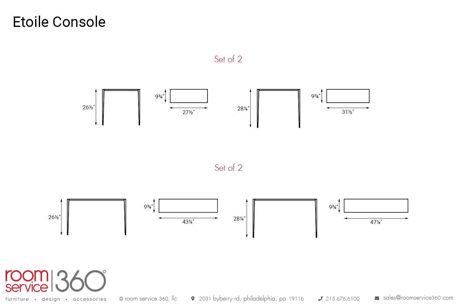 - 47¼"W × 9¾"D × 28¼"H