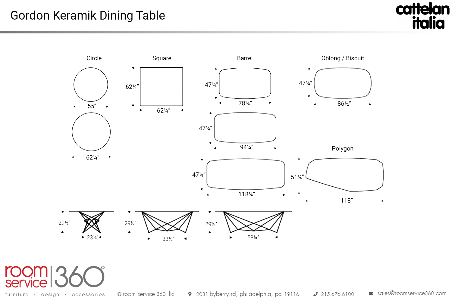 Gordon Keramik dining table is available in three barrel, one square, and two round sizes. The top comes in an array of ceramic finishes while the base comes in different metal finishes. Please note that Zink Brown ceramic is not available in the round and square sizes.