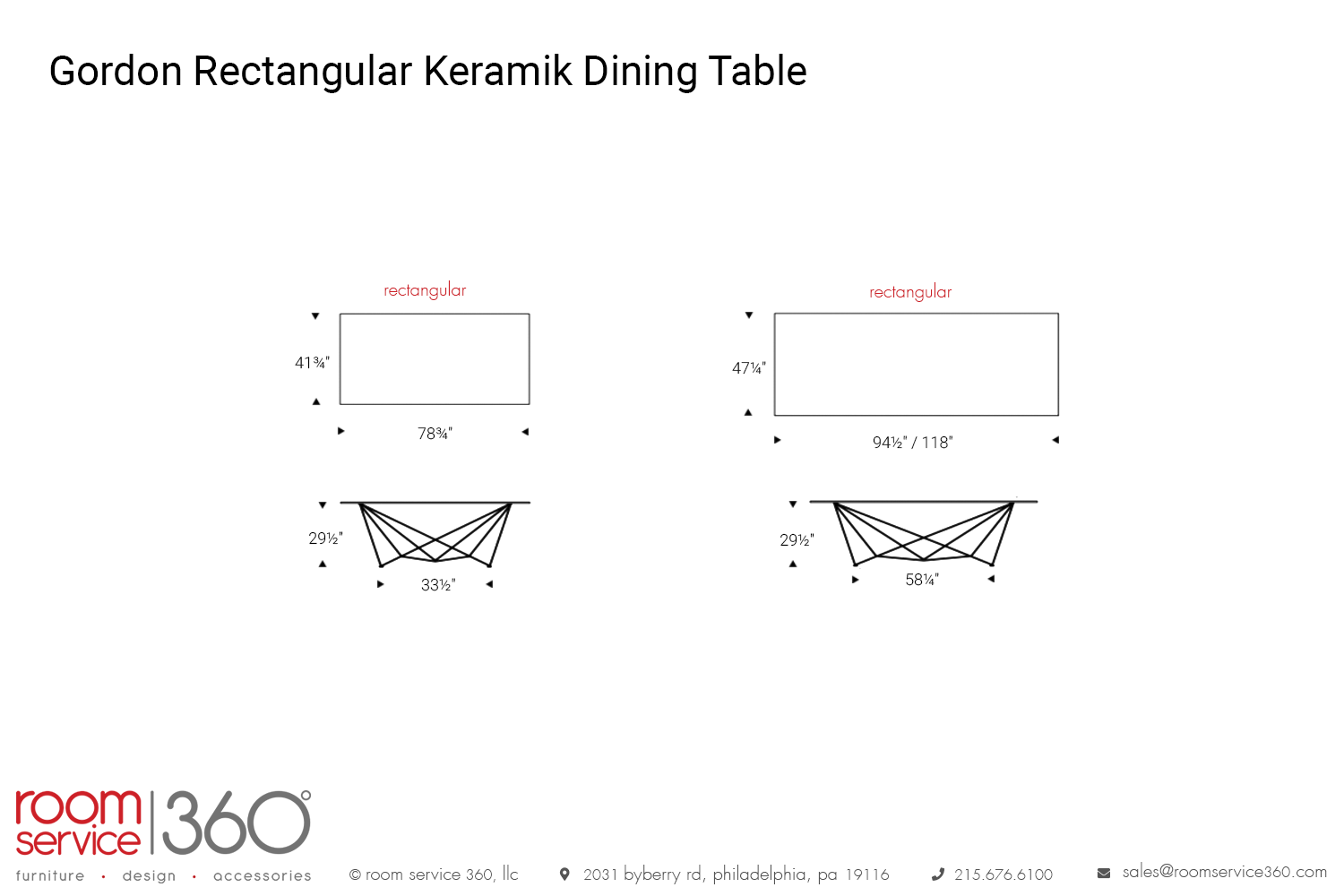 - 118"W x 47¼"D x 29½"H
