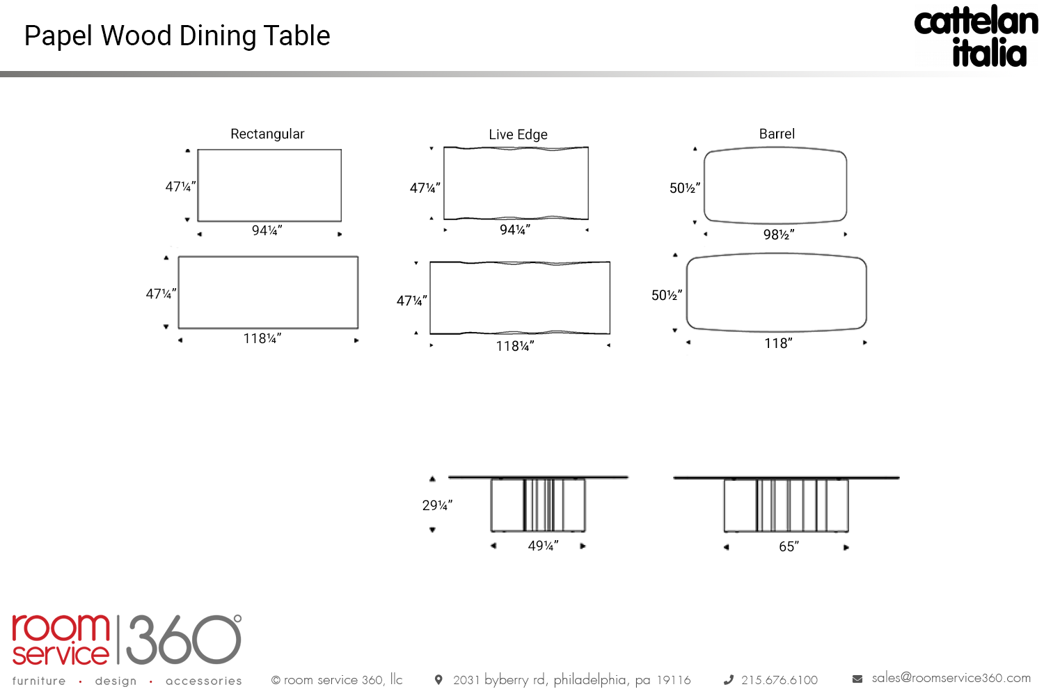 - 118½"W × 47¼"D (live edge)