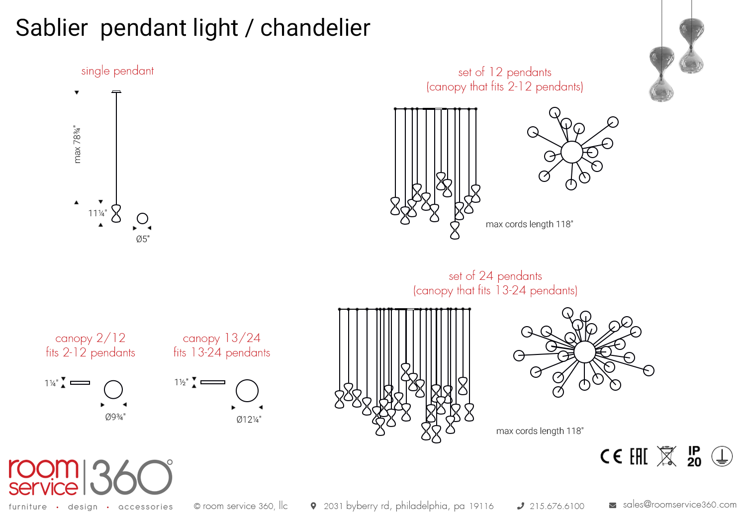 - Max cord length for single pendant: 79"