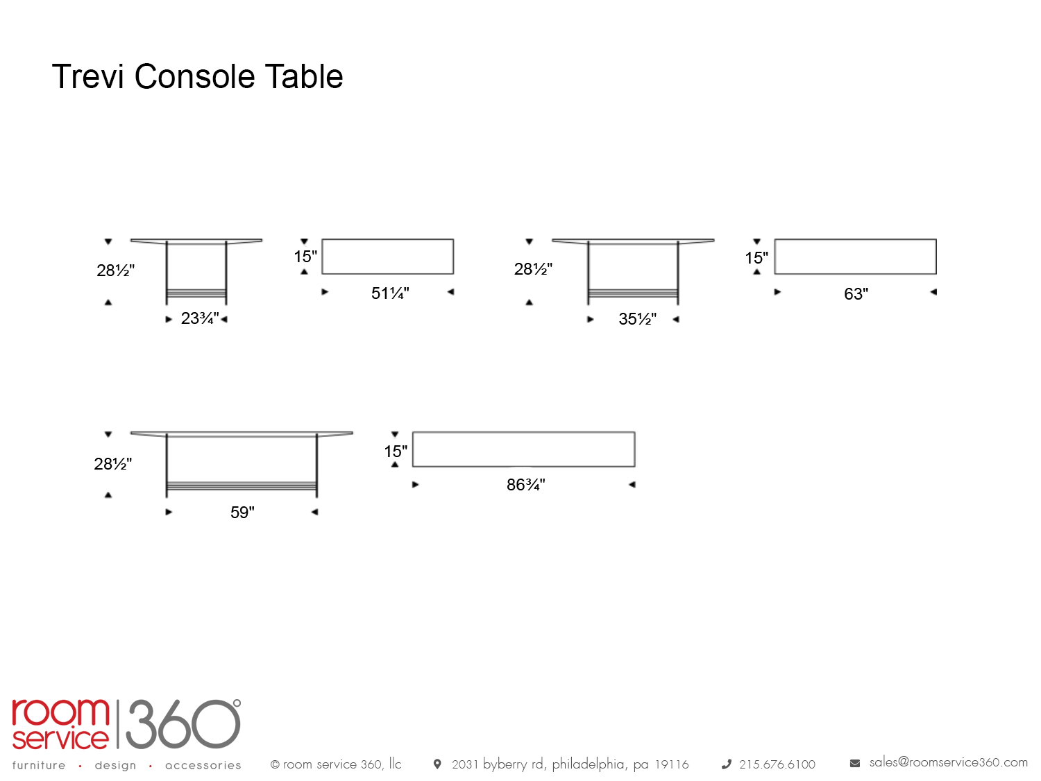 - 63"W x 15"D x 28½"H