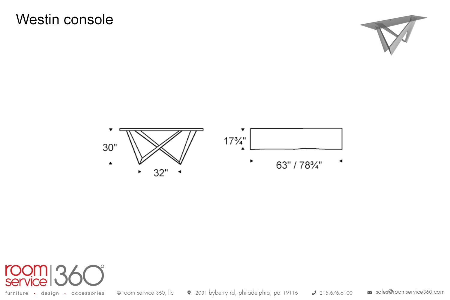 - 78¾"W × 17¾"D × 30"H