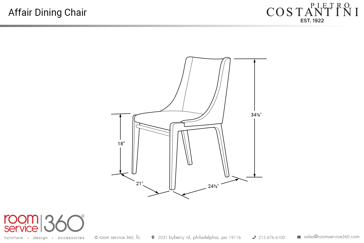 - 21"W × 24½"D × 34¼"H (seat height: 18")