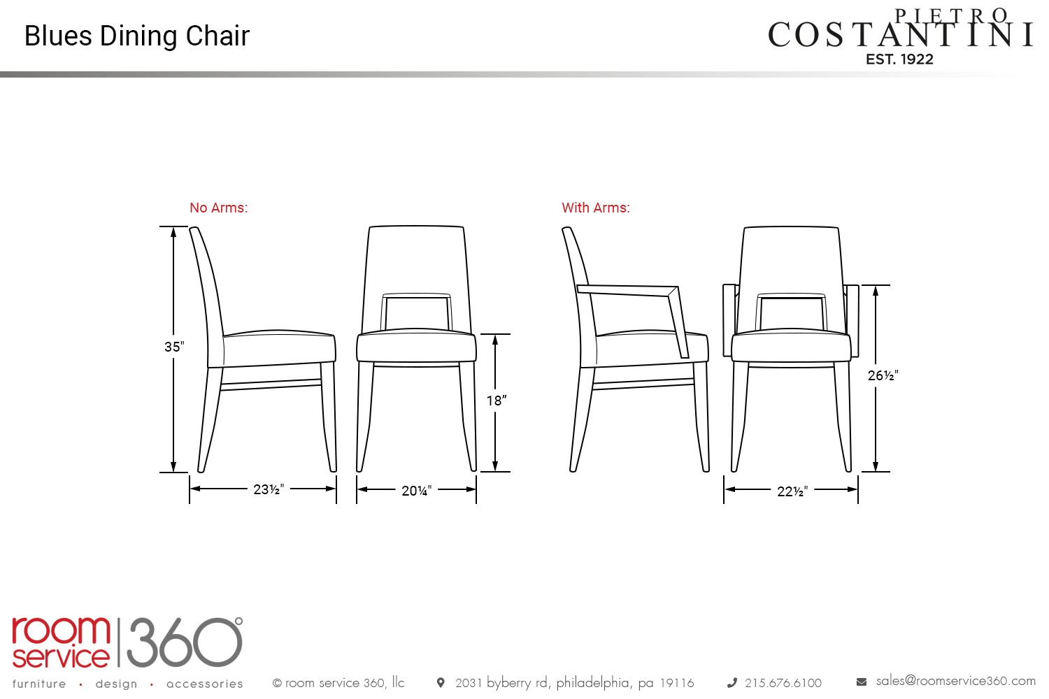 - 22½"W × 23½"D × 35"H (seat height: 18") (arm height: 26½")