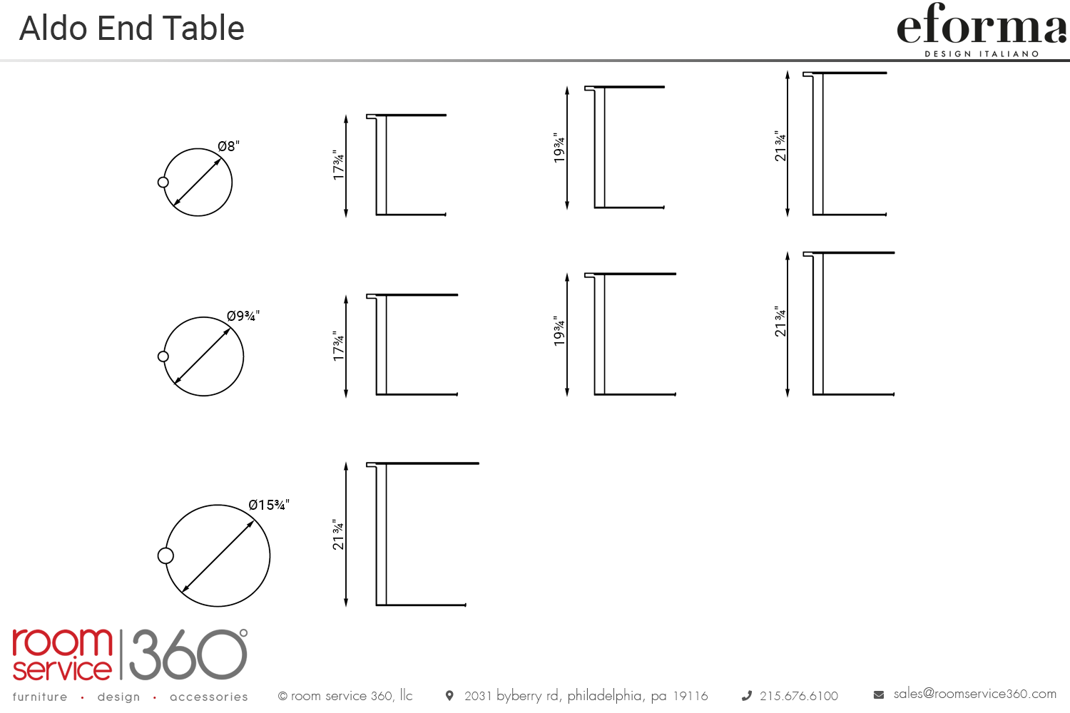 - Ø8" × 17¾"H