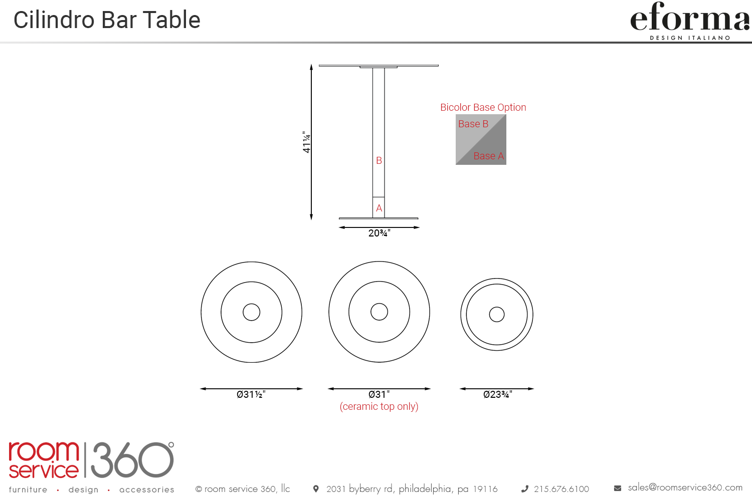 - Ø31½" (ceramic ½" less)