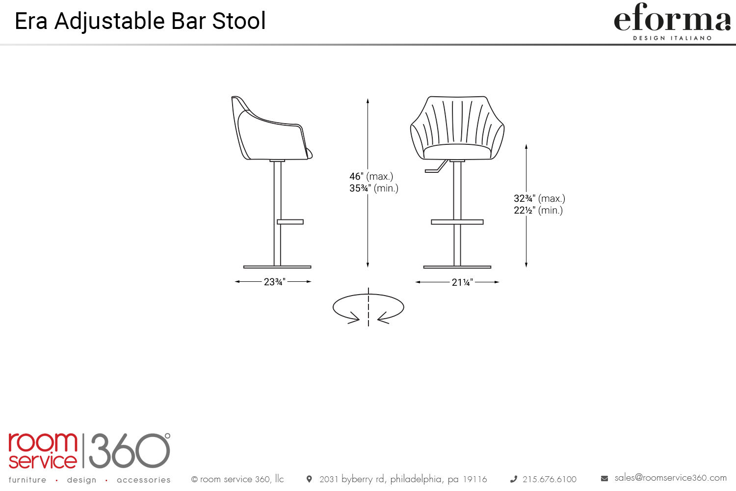 - Height adjustable swiveling bar stool