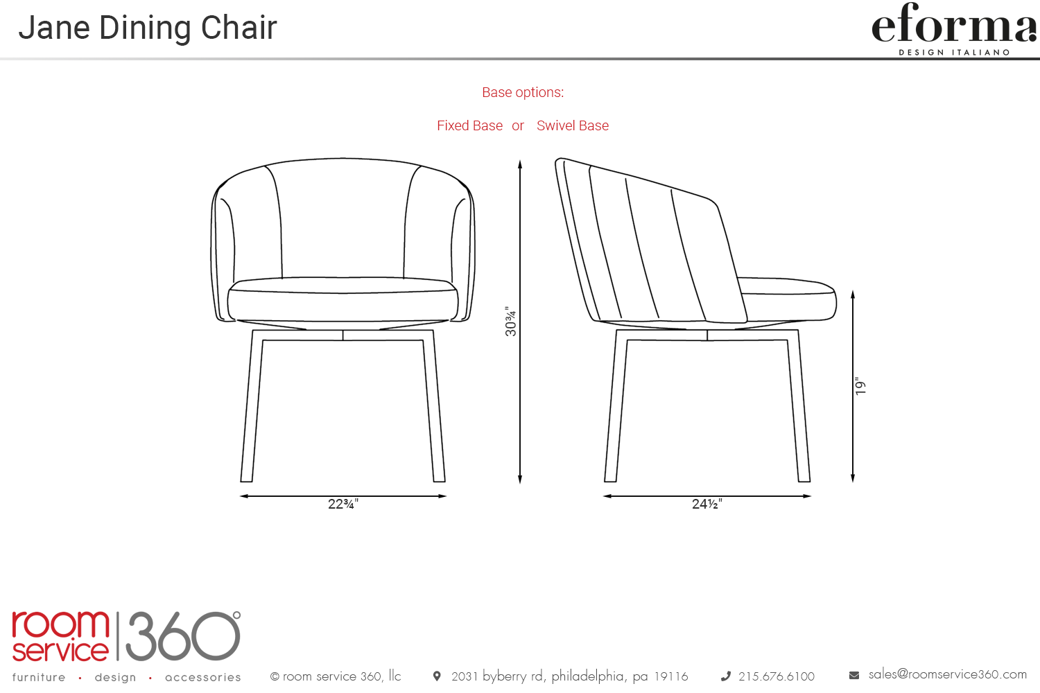 Customize your chair by choosing from a selection of fabric, leather, and eco-leather upholstery options, as well as various metal finishes for the base. Part of the Jane collection designed by Antoy Filips and meticulously manufactured in Italy by Eforma, this dining chair is a testament to timeless design and impeccable craftsmanship.