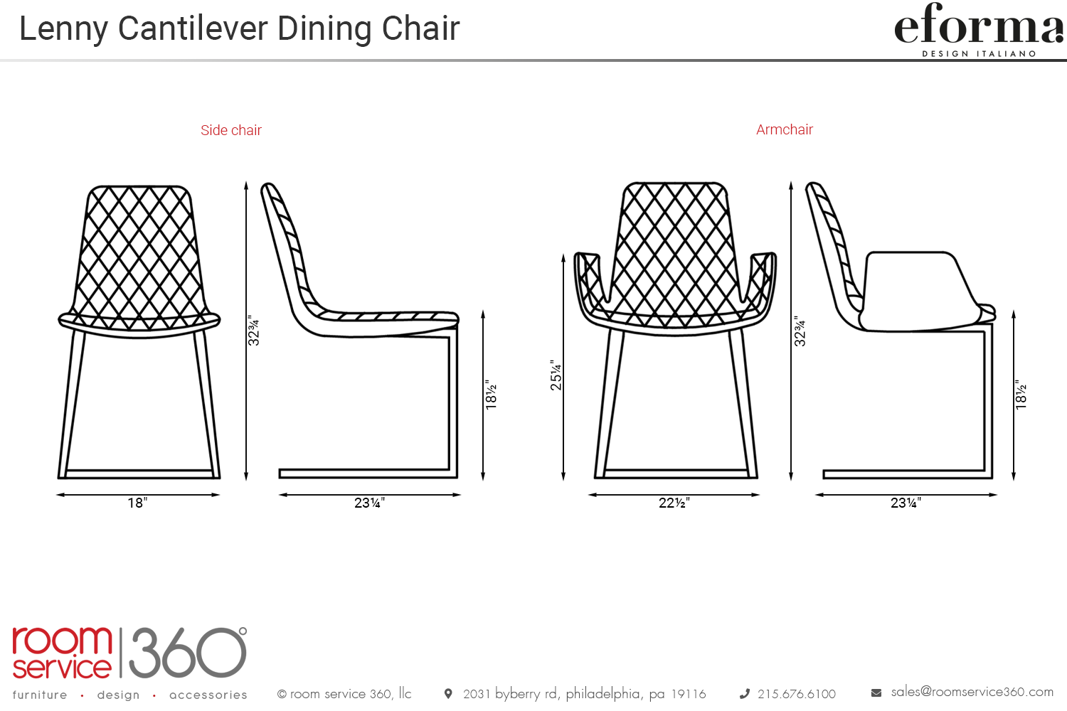 Customize your experience by choosing from an array of leather and eco-leather upholstery options, complemented by several metal choices for the base. Part of the Lenny collection, meticulously manufactured in Italy by Eforma, the Lenny cantilever dining chair is a testament to refined design and exceptional craftsmanship.
