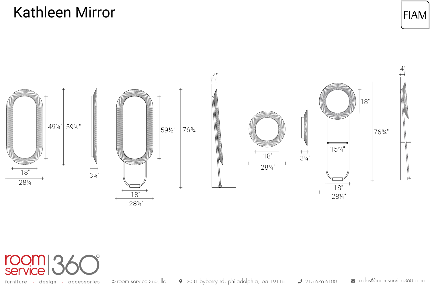- 28¼"W × 4"D × 76¾"H (Both Oval and Round)