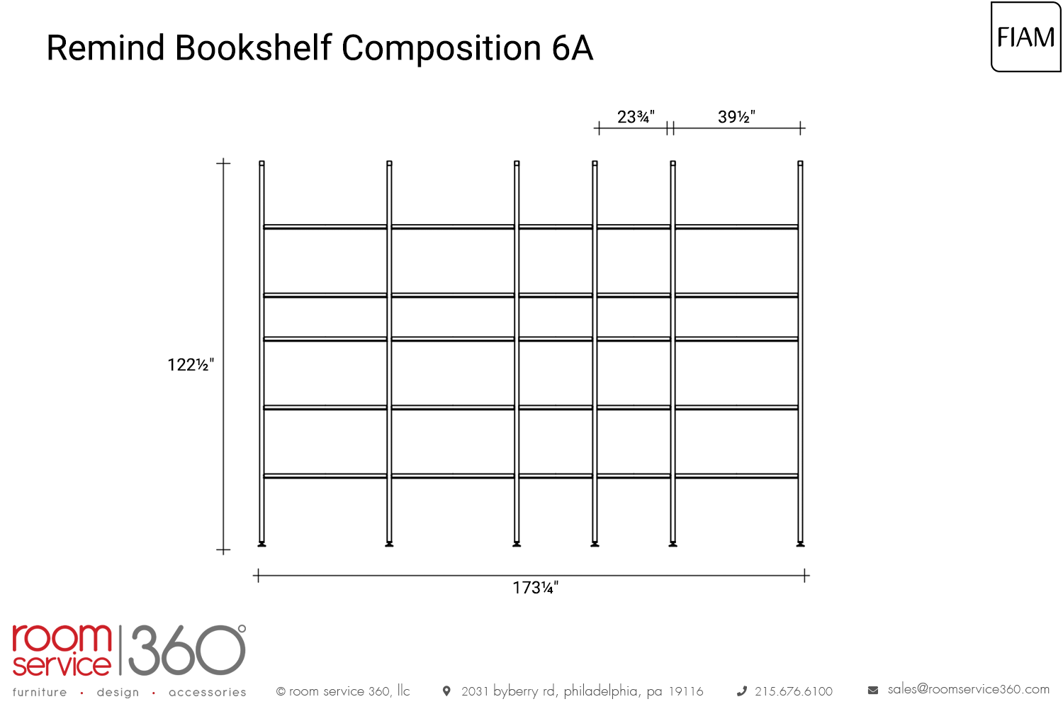 - 173¼"W × 16¼"D × 122½"H