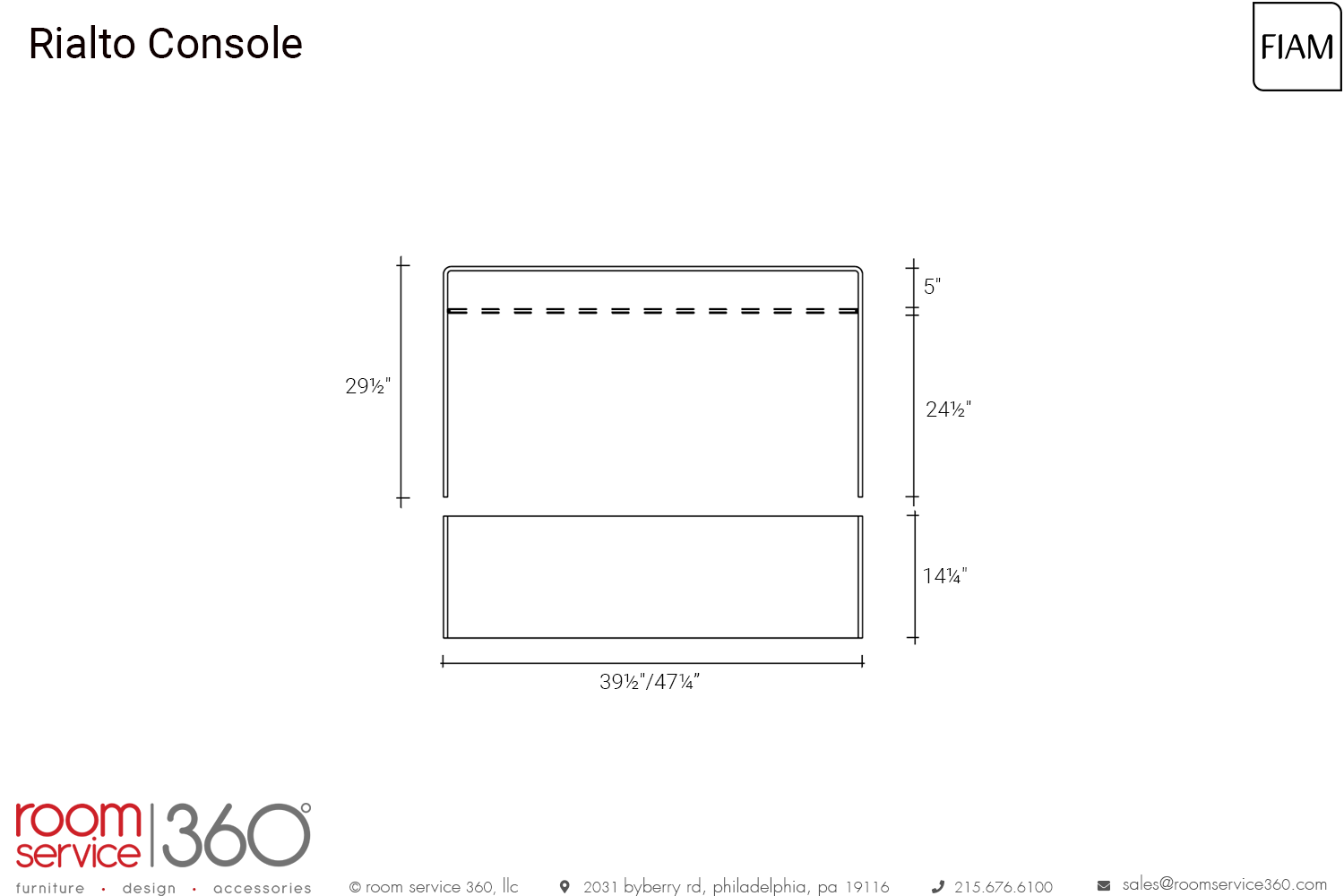 - 47¼"W × 14¼"D × 29½"H