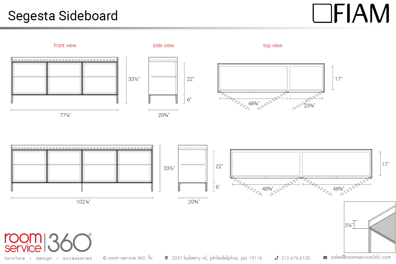 - 77¼"W × 20¾"D × 33½"H