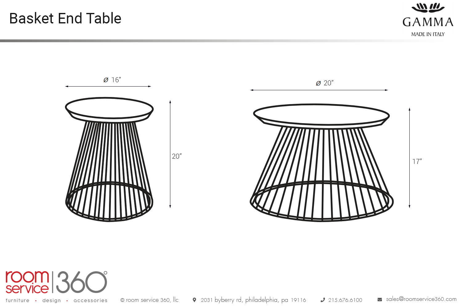 Manufactured in Italy by Gamma Arredamenti and part of the exquisite Dandy collection, the Basket end table is available in two sizes to accommodate individual needs. It has a metal base and round top that could be finished in glass, ceramic as well as in marble.