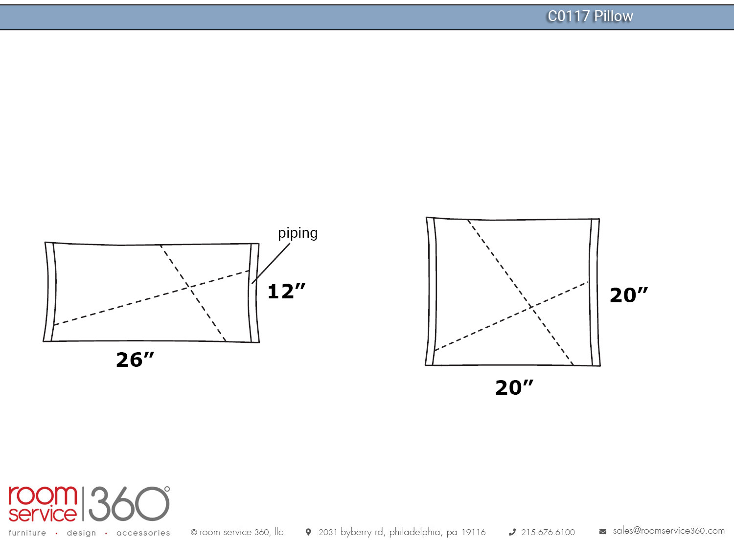 - C0120 pillow: 26"W × 12"H